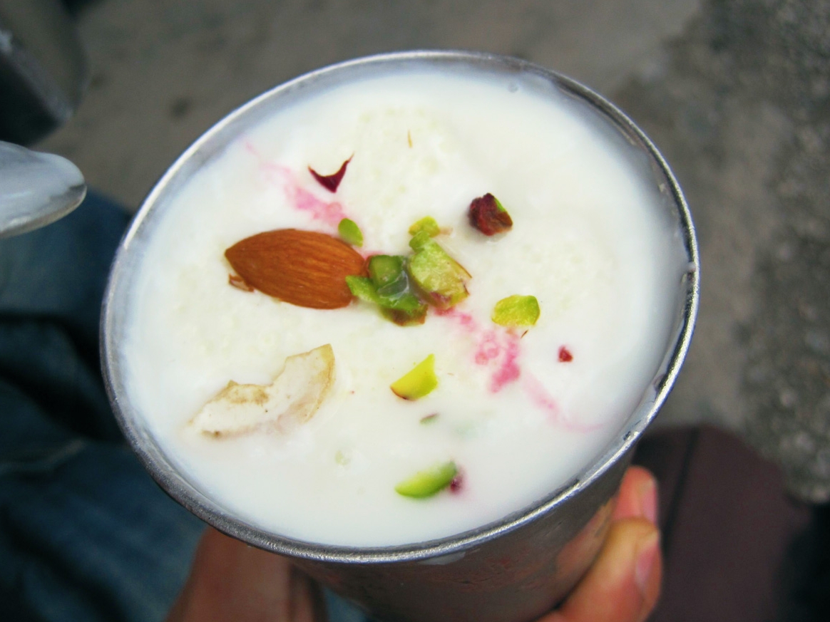 ドロッとしたラッシーの上にさらにもっと濃いマライという高脂肪がのってます。
