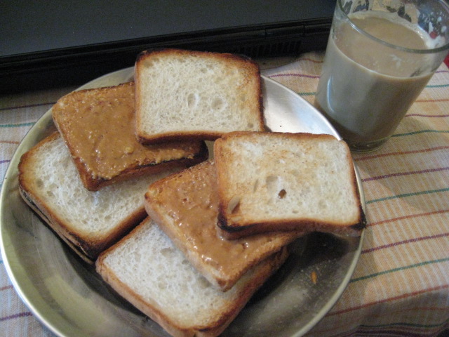本日の朝食が出来上がりました!ピーナツバター&バナナonトースト。とコーヒー。