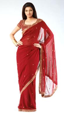 ヘソだしブラウスとペチコートの上から6メートルものなが~い布を巻くだけのサリー。